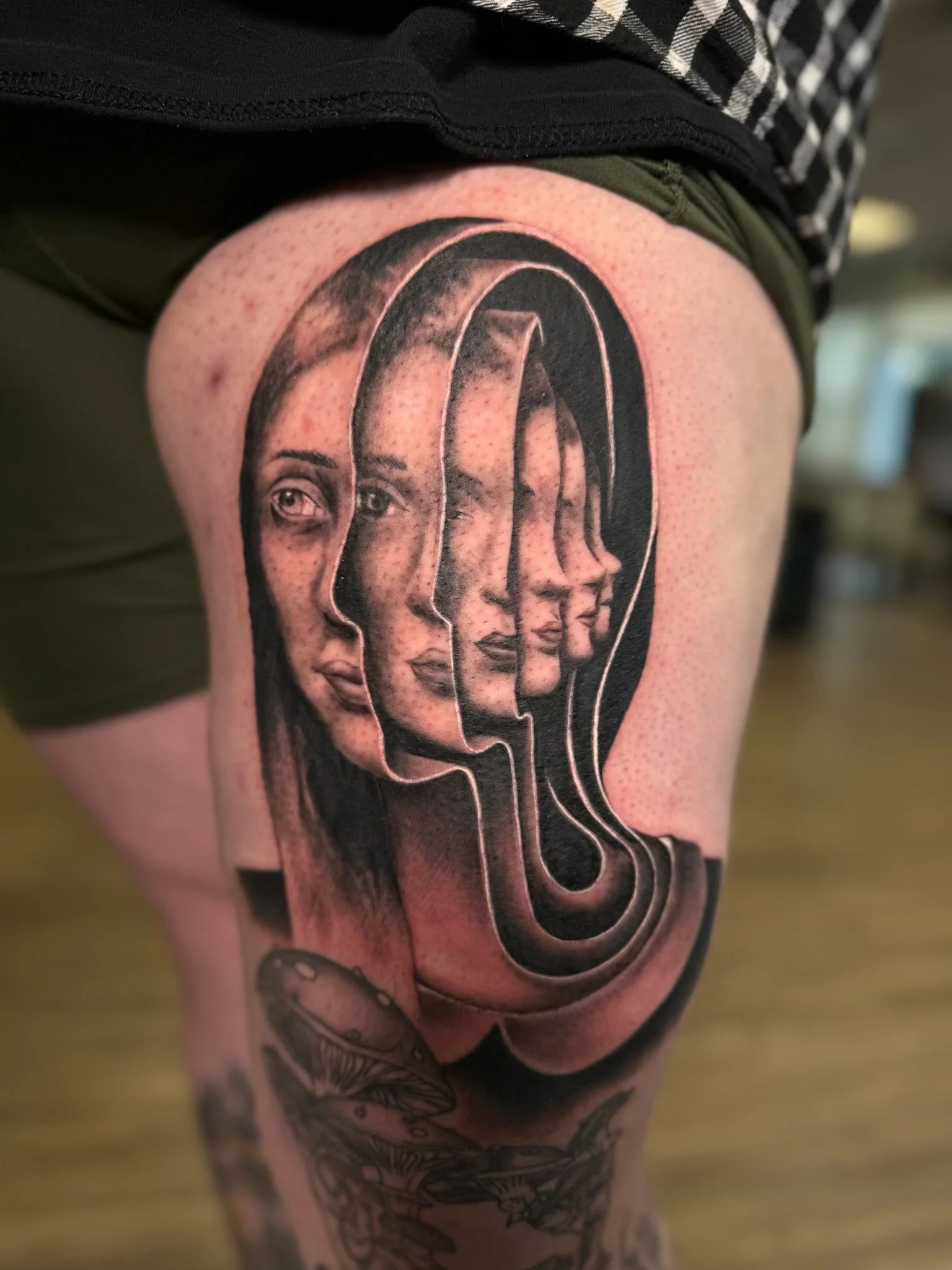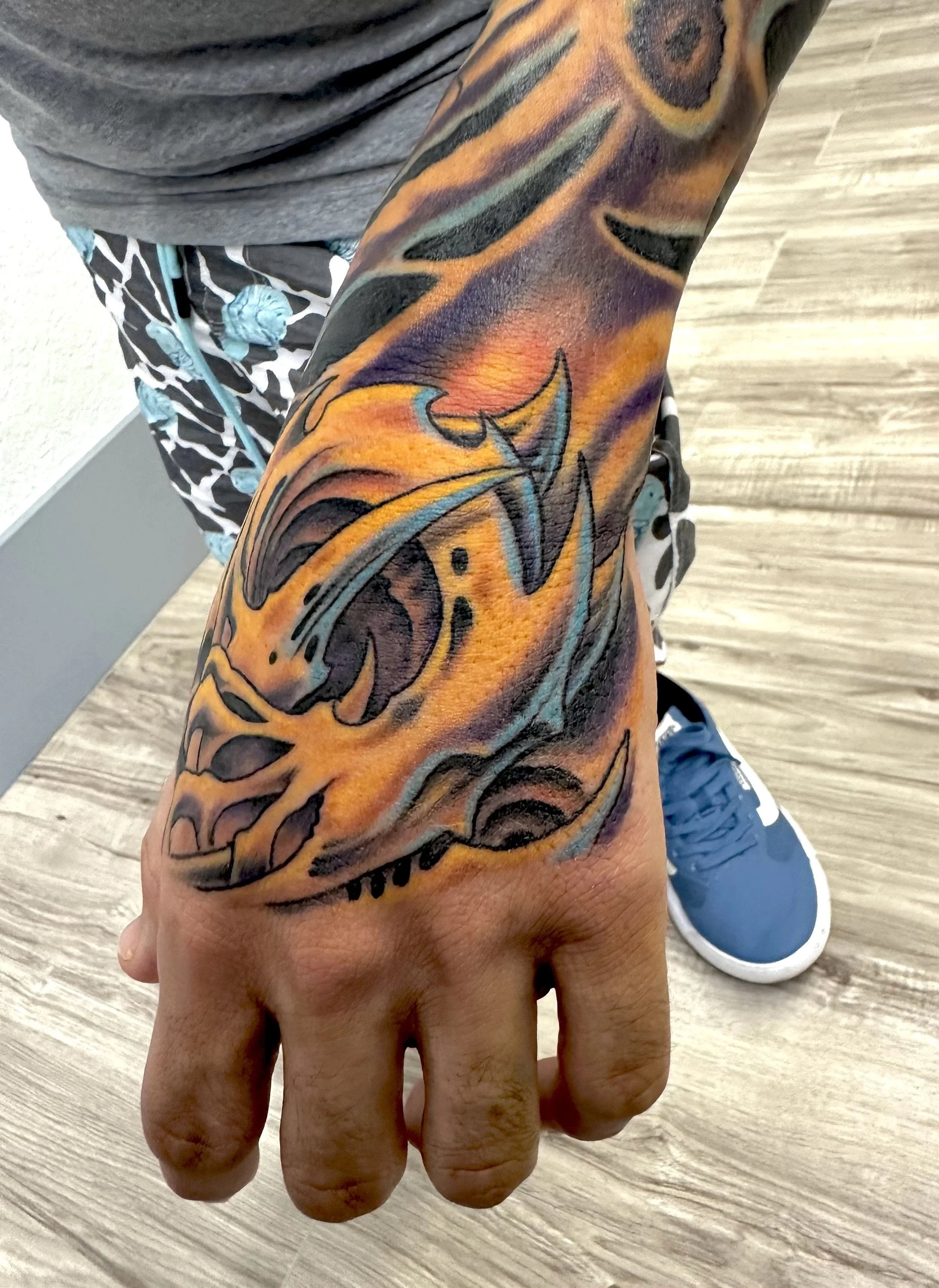 With over a decade of experience and a bold, versatile style that spans neo-traditional, anime, blackwork, watercolor, glitter, and more, Aaron’s work brings a vibrant, custom edge to every piece he creates.