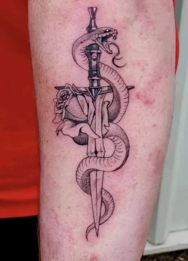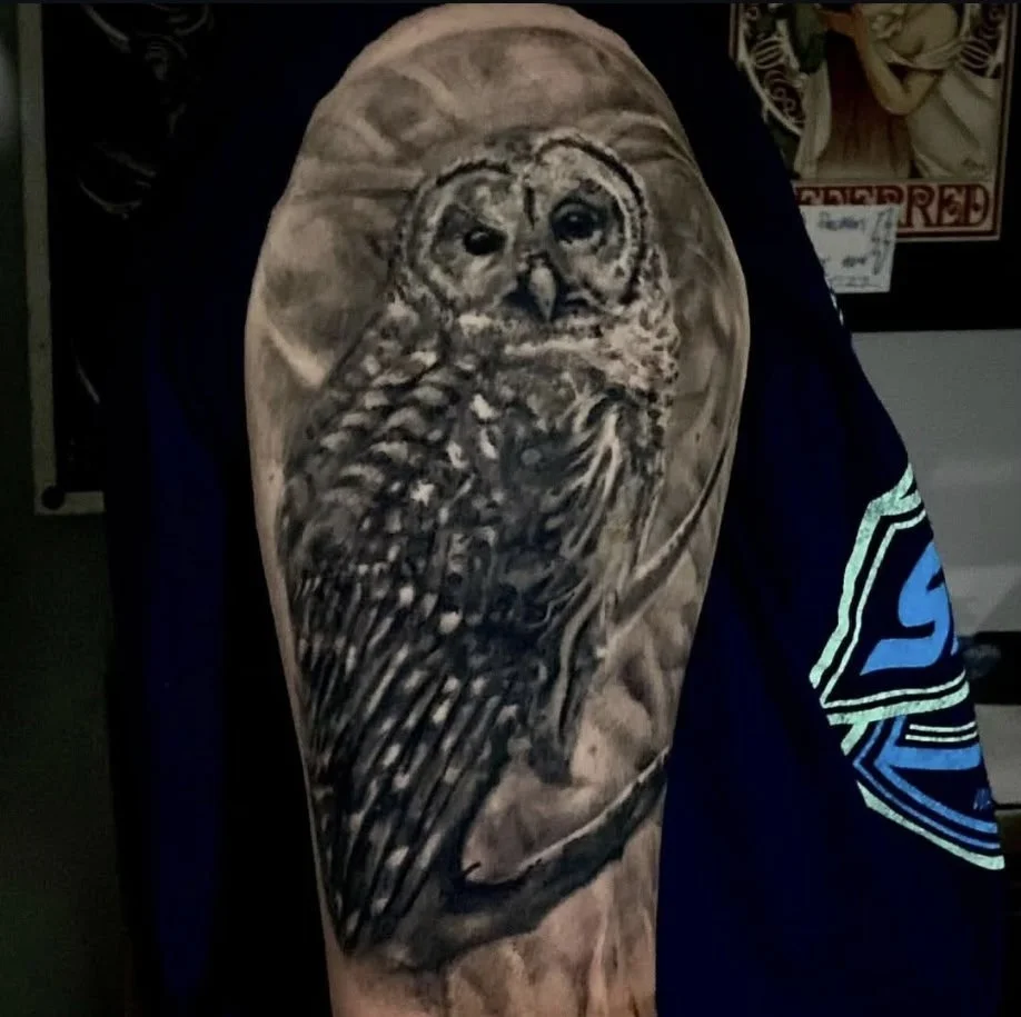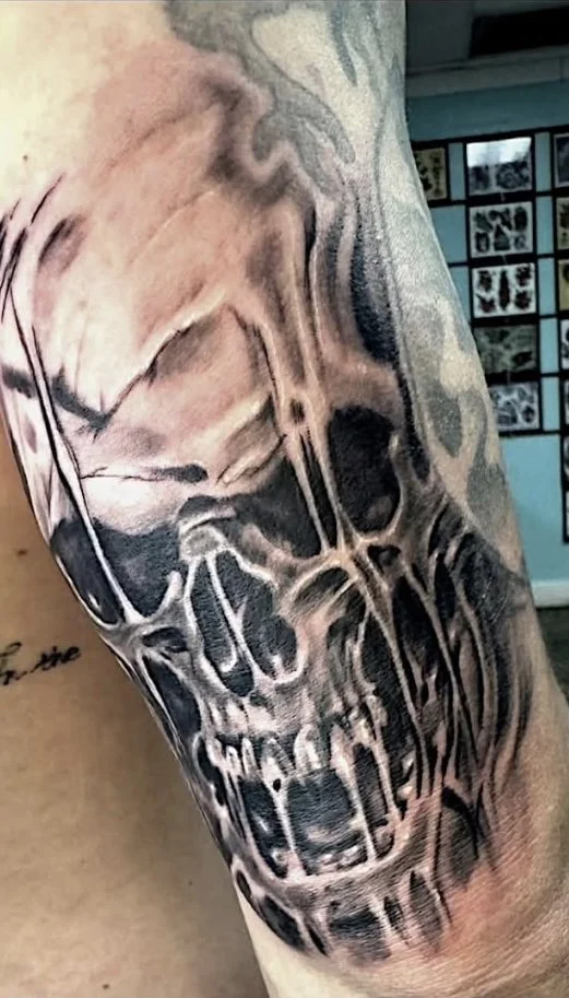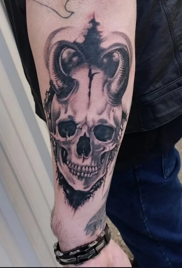 John Dark was born in Fort Benning, GA, and has been creating art in one form or another since he could hold a pencil. He started tattooing in 2002 and never looked back. A fan of horror films and all things dark, his love for the eerie shows up in his work, especially in realism, creepy concepts, and black and grey tattoos. If it’s spooky, shadowy, or slightly unsettling, he’s probably your guy.