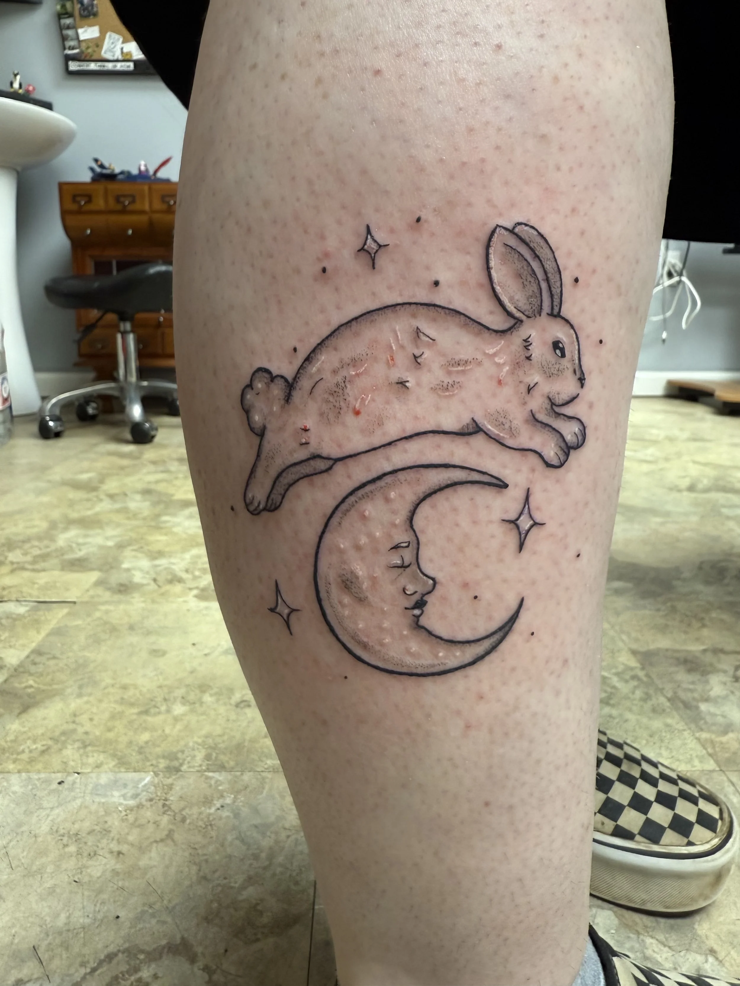 When I’m not tattooing, I’m painting, doing pottery, gaming, and managing a small zoo of 5 pets.